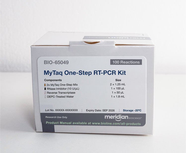 MyTaq™ One-Step RT-PCR Kit incorporates the latest advances in buffer chemistry, including Meridian ultra-pure dNTPs, together with a proprietary reverse transcriptase and MyTaq HS, a new generation of antibody-mediated hot-start DNA polymerase. This ensures that MyTaq One-Step RT-PCR Kit enables fast, highly-specific and ultra-sensitive amplification of RNA targets for use in a broad range of downstream applications.