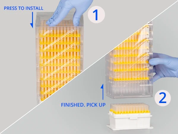 - 빈 팁 랙에 맞게 설계.